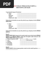 Dianggap tidak berminat berminat melanjutkan melanjutkan objek sewa tersebut tersebut dan pihak kedua wajib mengosongkan objek. Pasal 10 perpanjangan sewa 1. Kalau memang ada jalan untuk damai atau tidak melanjutkan perkara ke pengadi. Sewa menyewa ialah suatu perjanjian, dengan mana pihak yang satu mengikatkan dirinya untuk memberikan kepada pihak yang lainnya kenikmatan dari sesuatu barang. Surat perjanjian sewa rumah adalah digunakan untuk memberi perlindungan kepada tuan rumah namun begitu, mempunyai surat perjanjian rumah sewa sahaja tidak cukup meyakinkan pihak.